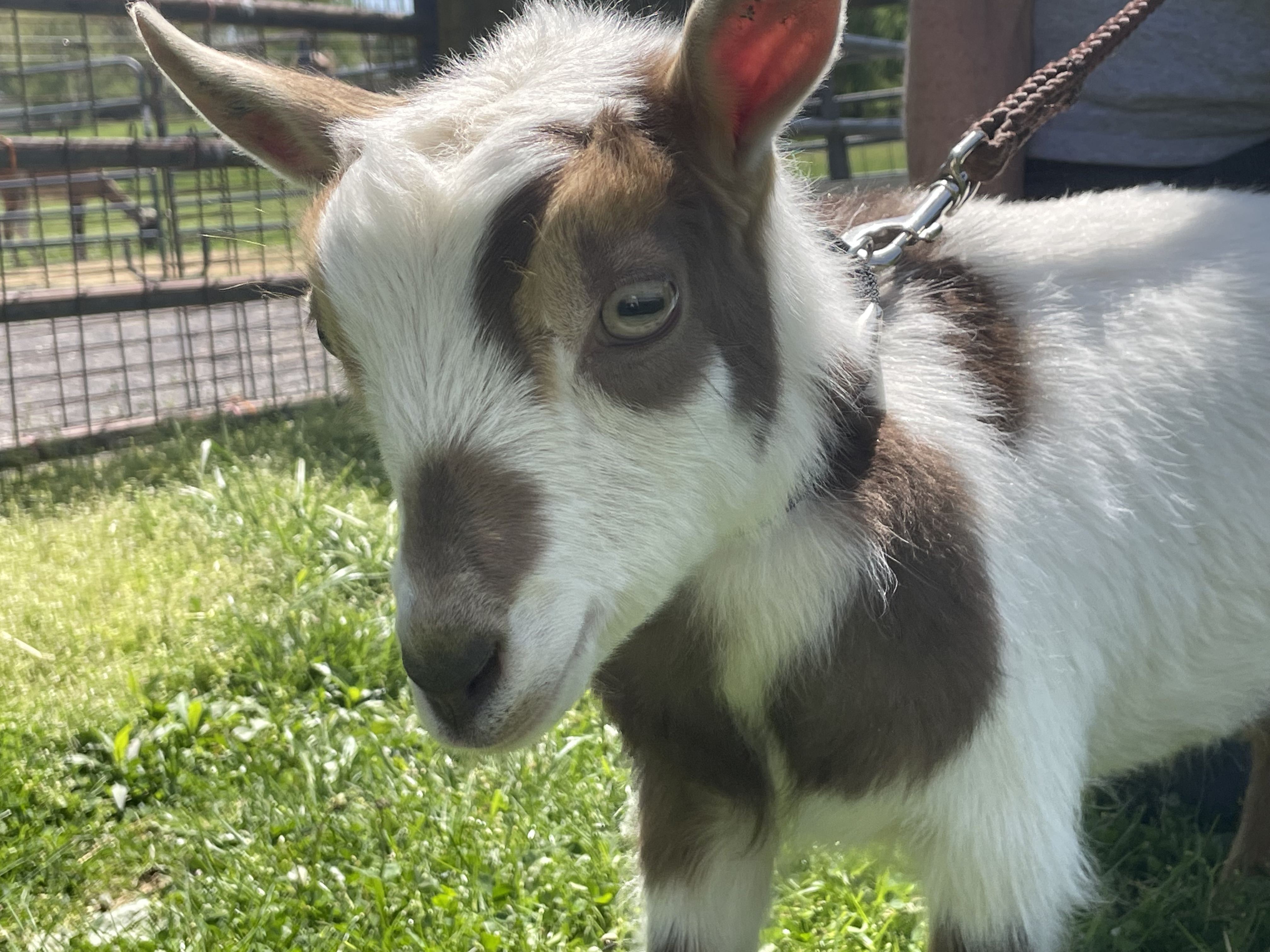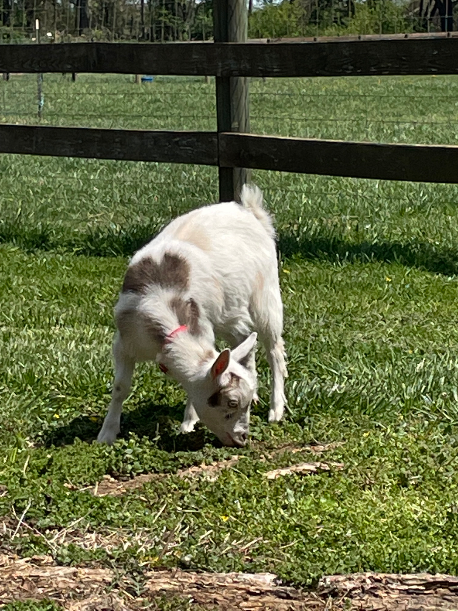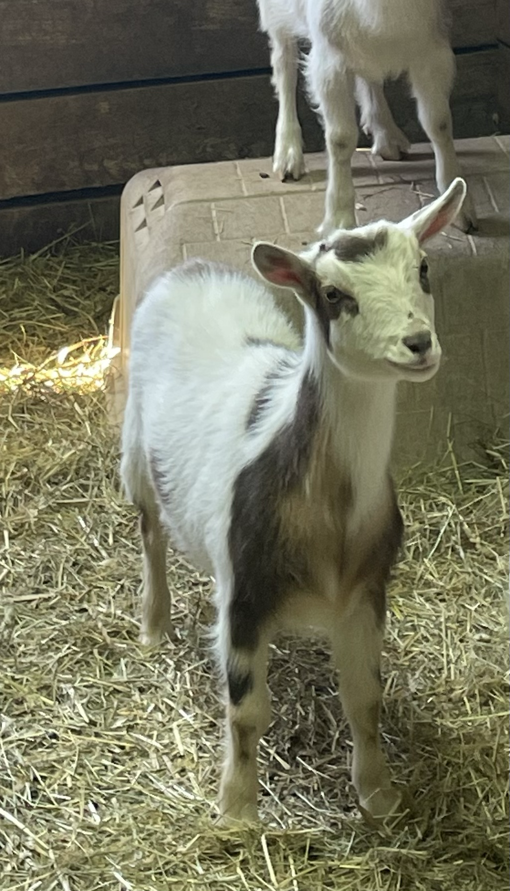 About: Porsha is smart and sporty. She gets along well with other goats and is sister to Petra.